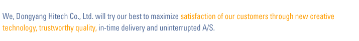 We, Dongyang Hitech Co., Ltd. will try our best to maximize satisfaction of our customers through new creative technology, trustworthy quality, in-time delivery and uninterrupted A/S. Thank you very much. |